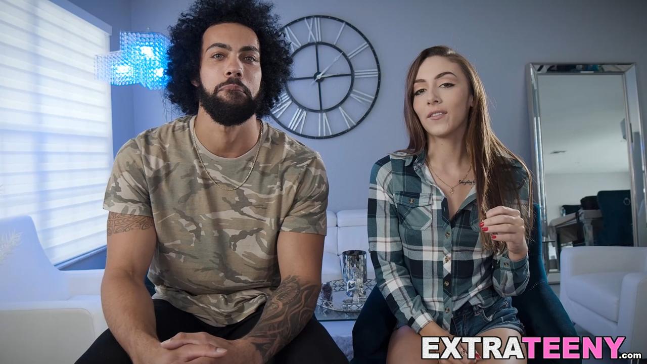 Petite babe Dani Blu with natural tits gives a deep, sloppy blowjob to a big cock. He then pounds her hard in doggystyle, making her scream as he fills her tiny, shaved pussy. He blasts his load all over her face.
