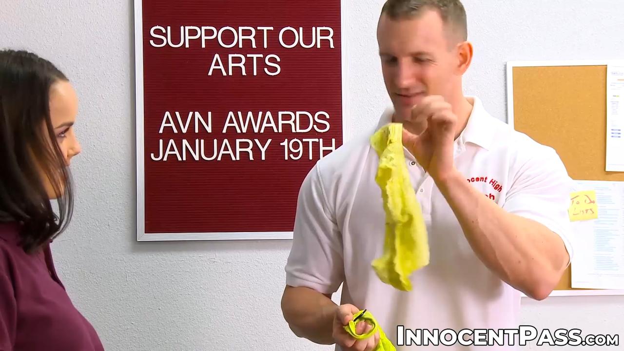 Dillion Harper, the innocent-looking schoolgirl, teases and seduces her professor TJ Cummings. She gives him a deepthroat blowjob and bounces on his big cock in doggystyle. He pounds her hard in missionary, and she cums on his big tit.