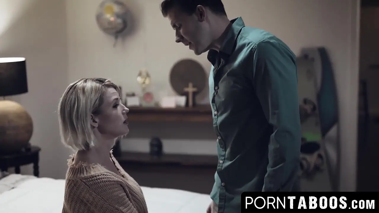 Blonde MILF Kit Mercer takes care of her stepson's throbbing erection, giving him a deep blowjob. She rides him in doggystyle, bouncing on his massive cock. They finish with a messy missionary cumshot.
