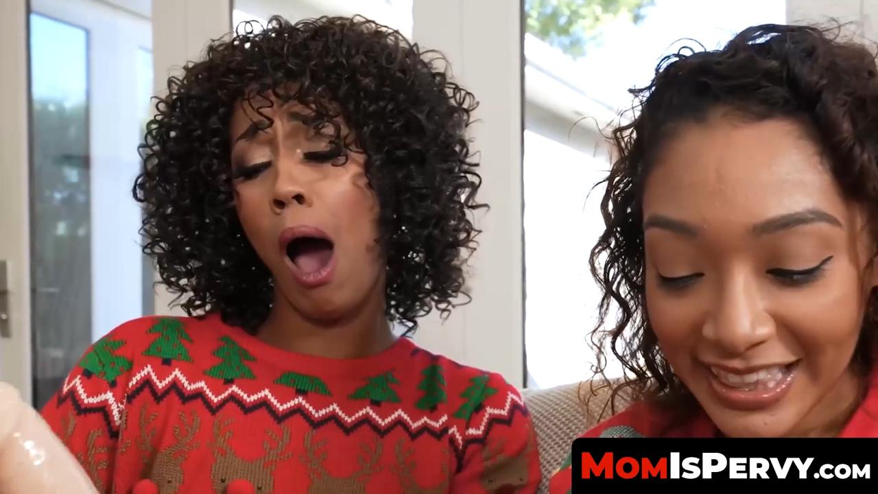Step-mom Misty Stone and her natural-titted stepdaughter Sarah Lace engage in a naughty 3-way. Misty blows her big cock while Sarah grinds on him in reverse cowgirl. Later, Sarah gives her step-mom a sloppy blowjob, and they both play with toys, leading to a wild finishing scene where he fills both of their pussies.
