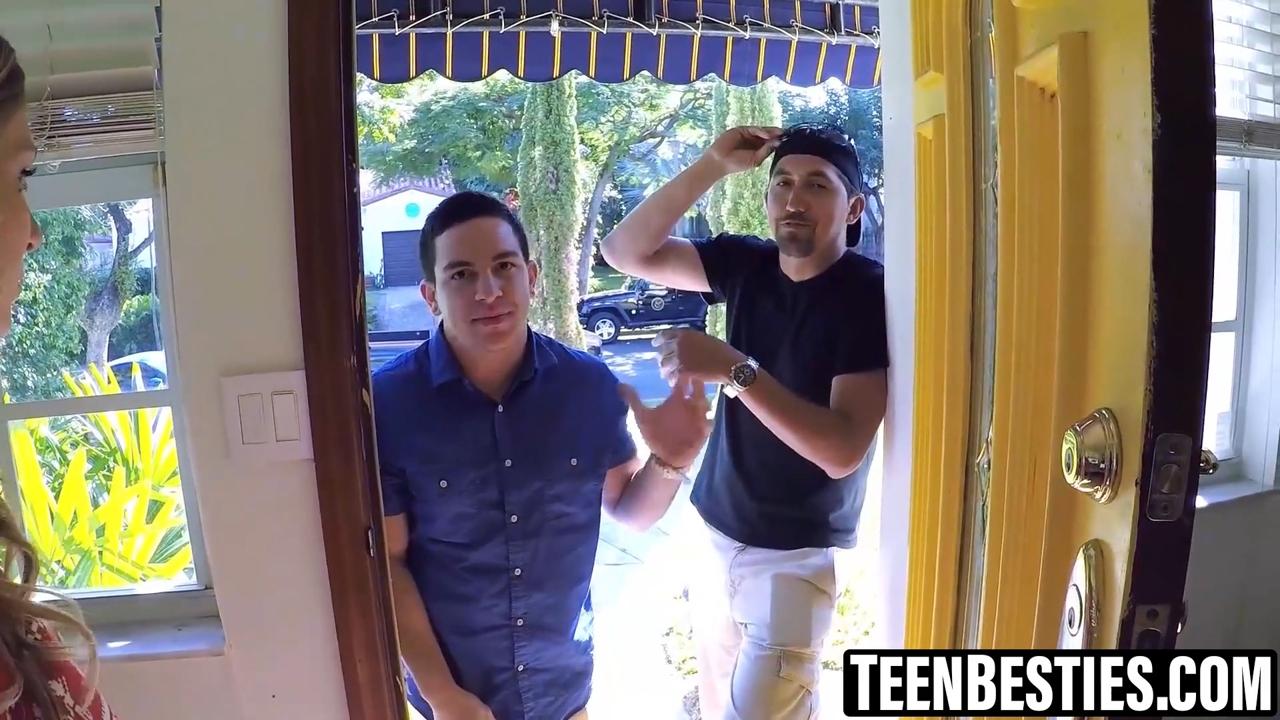 Two hot teen BFFs with big natural tits and big dicks get into a foursome. They start by giving each other sloppy blowjobs then switch to doggy style. One of the teens rides his bestie's cock hard while the other babe sucks him off, ending with a big cumshot.