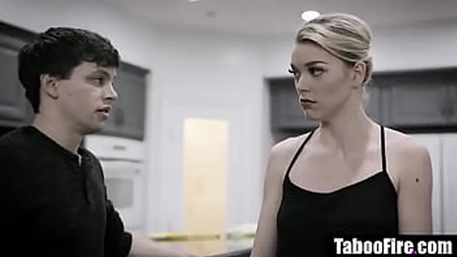Mean young guy dominates a submissive blonde housemaid. She sucks his massive dick while kneeling on the floor. He then pounds her in doggystyle, making her moan and beg for more.